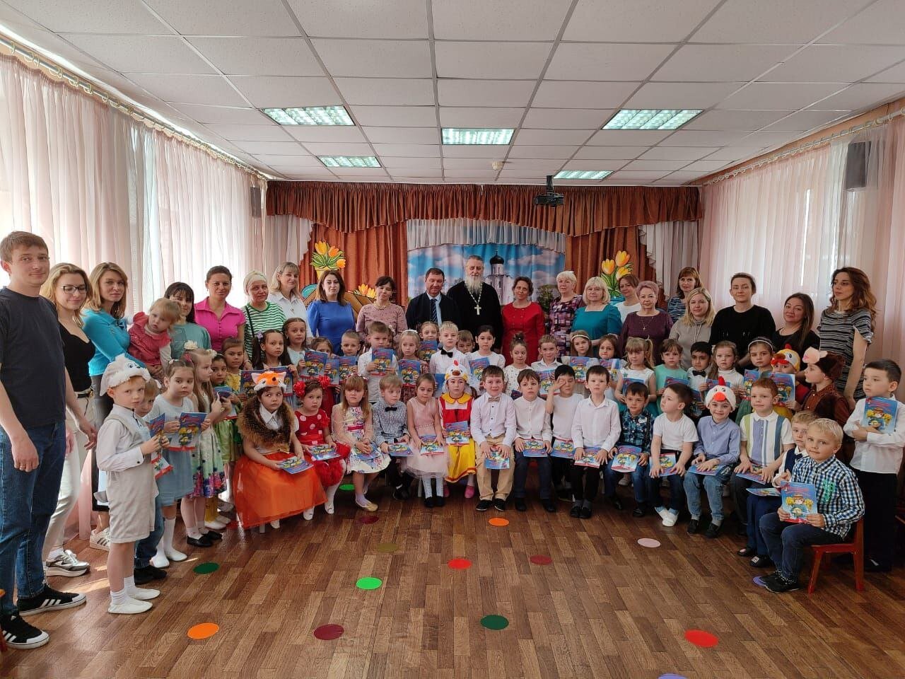 В гостях у ребят побывали протоиерей Виктор Нестеров настоятель Космо-Дамианского храма (мкр. Болшево) и преподаватель «Основы православной культуры» Саянова Валентина Васильевна. Ребята порадовали присутствующих весёлым праздником. Они пели тематические песни, читали стихи, играли в весёлые игры и показали замечательные рождественские сказки-драматизации. Перед родителями воспитанников выступил директор гимназии «Российская школа» Сергей Петрович Осташков. В заключение, о. Виктор поздравил всех со светлым праздником Пасхи и пожелал всем здоровья, деткам — послушания, а взрослым — успехов в работе и подарил подарки.
