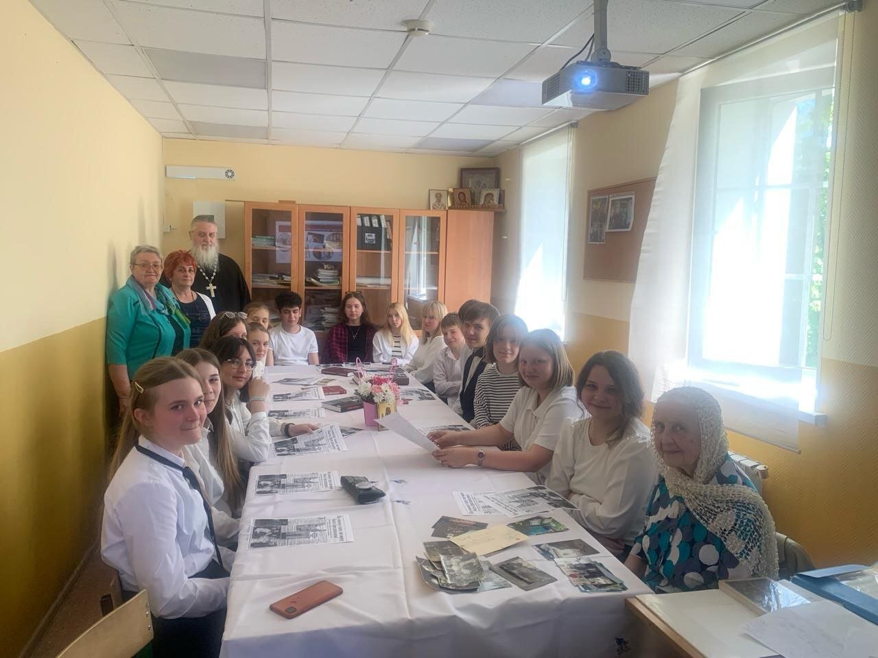 Урок был посвящён истории Космо-Дамианского храма и Болшевским новомученикам. На уроки выступила дочь священномученика протодиакона Николая Тахтуева Вера Николаевна. Ребята узнали много нового и интересного.