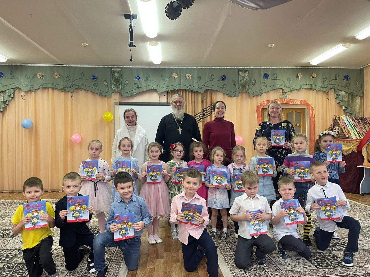 В гостях у ребят побывали протоиерей Виктор Нестеров, настоятель Космо-Дамианского храма (мкр. Болшево) и преподаватель «Основы православной культуры» Васильева Марина Владимировна. Весёлый детский праздник очень нравится воспитанникам.