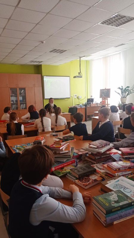 Разговор шёл о книгах, книгах о Боге и не только. Ребята узнали о известно болшевском жителе, священнике, литераторе — Сергее Николаевиче Дурылине. Говорили о взаимо уважении друг ко другу, о том, как важно слушаться родителей и учителей. Отец Виктор ответил на вопросы, которые появились у ребят в ходе беседы. А еще, все ребята получили сладкие подарки от батюшки.