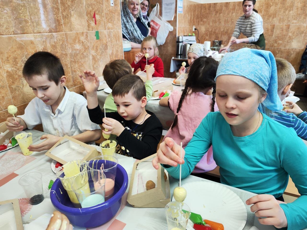 Воспитанникам воскресной школы при Космо-Дамианском храме настоятель храма протоиерей Виктор Нестеров сделал подарок: мастер — класс по украшению кейк- попсов.