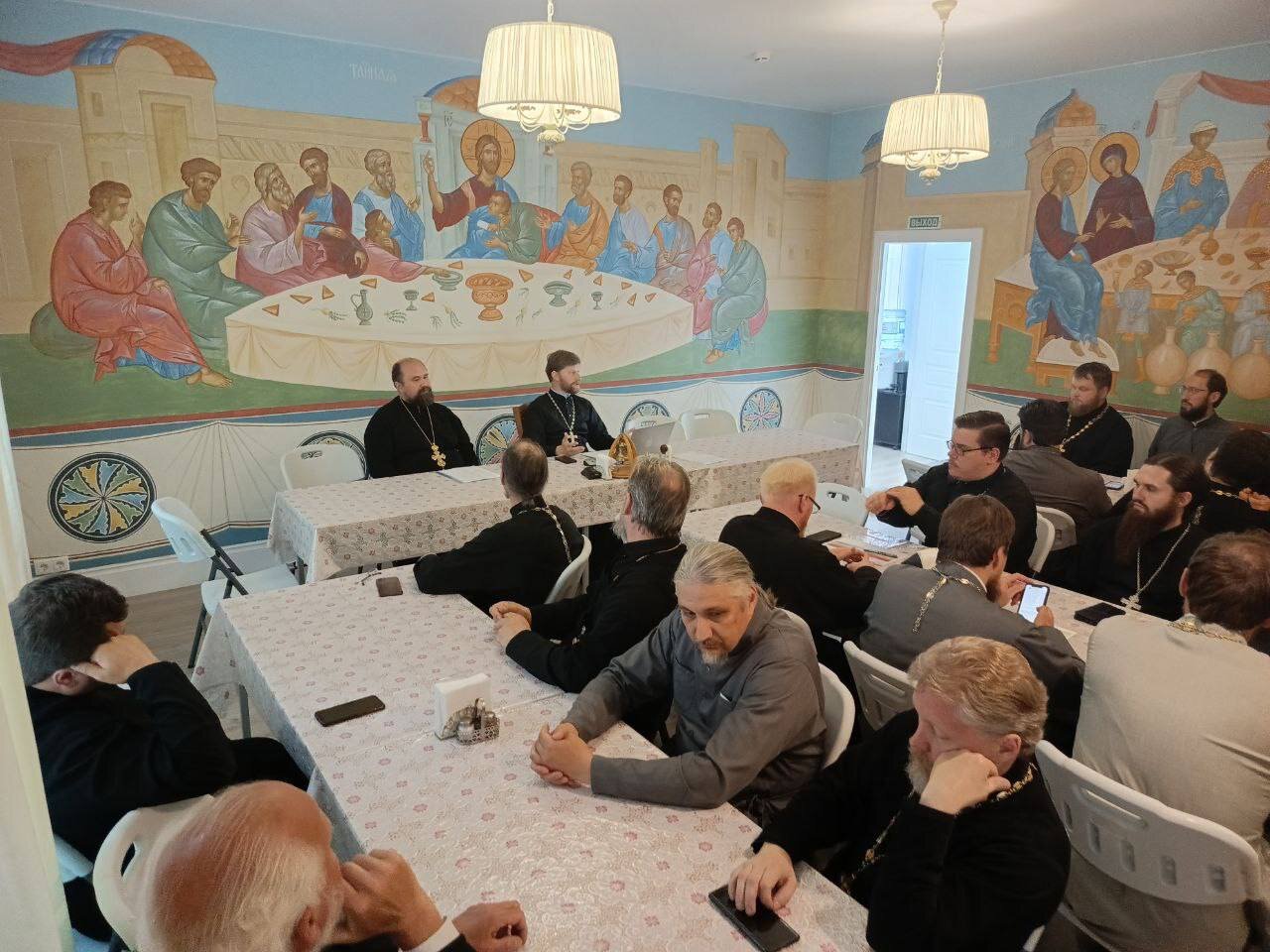 Благочинный обсудил со священнослужителями циркуляры и распоряжения, поступившие из Епархиального управления, рекомендации абитуриентам, поступающим в духовные заведения, вопросы паломнической деятельности.