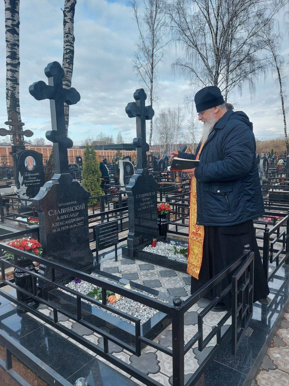 Настоятель Космо-Дамианского храма протоиерей Виктор Нестеров отслужил панихиду на могиле о. Александра и его матушки р.Б. Марины на Волковском кладбище г. Мытищи.